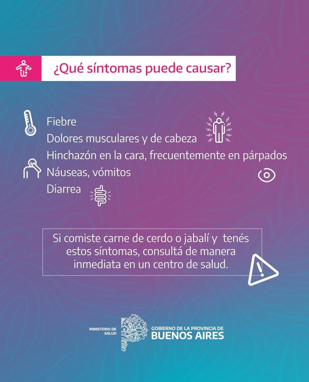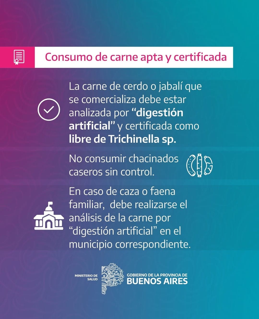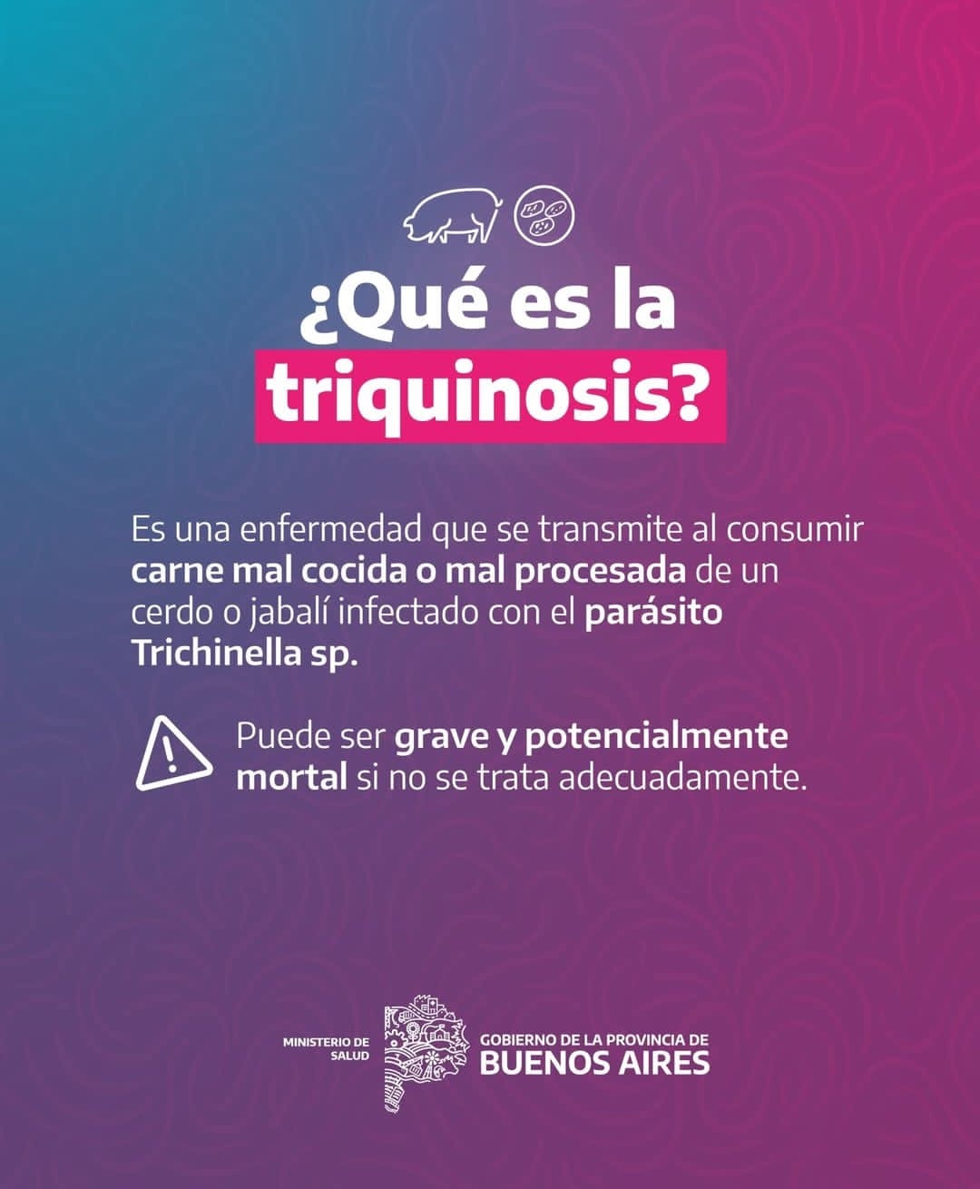 Según el último Boletín Epidemiológico del Ministerio de Salud Bonaerense se encendieron las alarmas sanitarias en la Provincia de Buenos Aires por 81 casos sospechosos de Triquinosis, de los cuales fueron confirmados 40 en las primeras 29 semanas de este año 2025.
